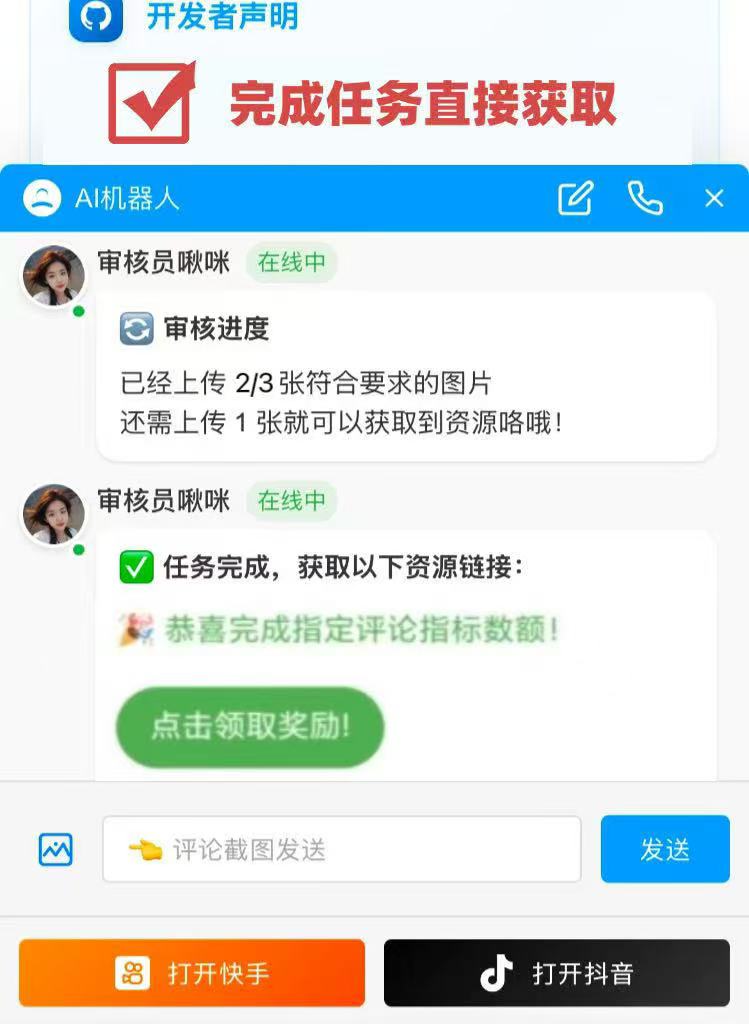 打开抖音/快手搜索随机关键词的前3个作品评论区(按下方图片指示操作)每个作品发送上面指定的评论,并截图保存好。